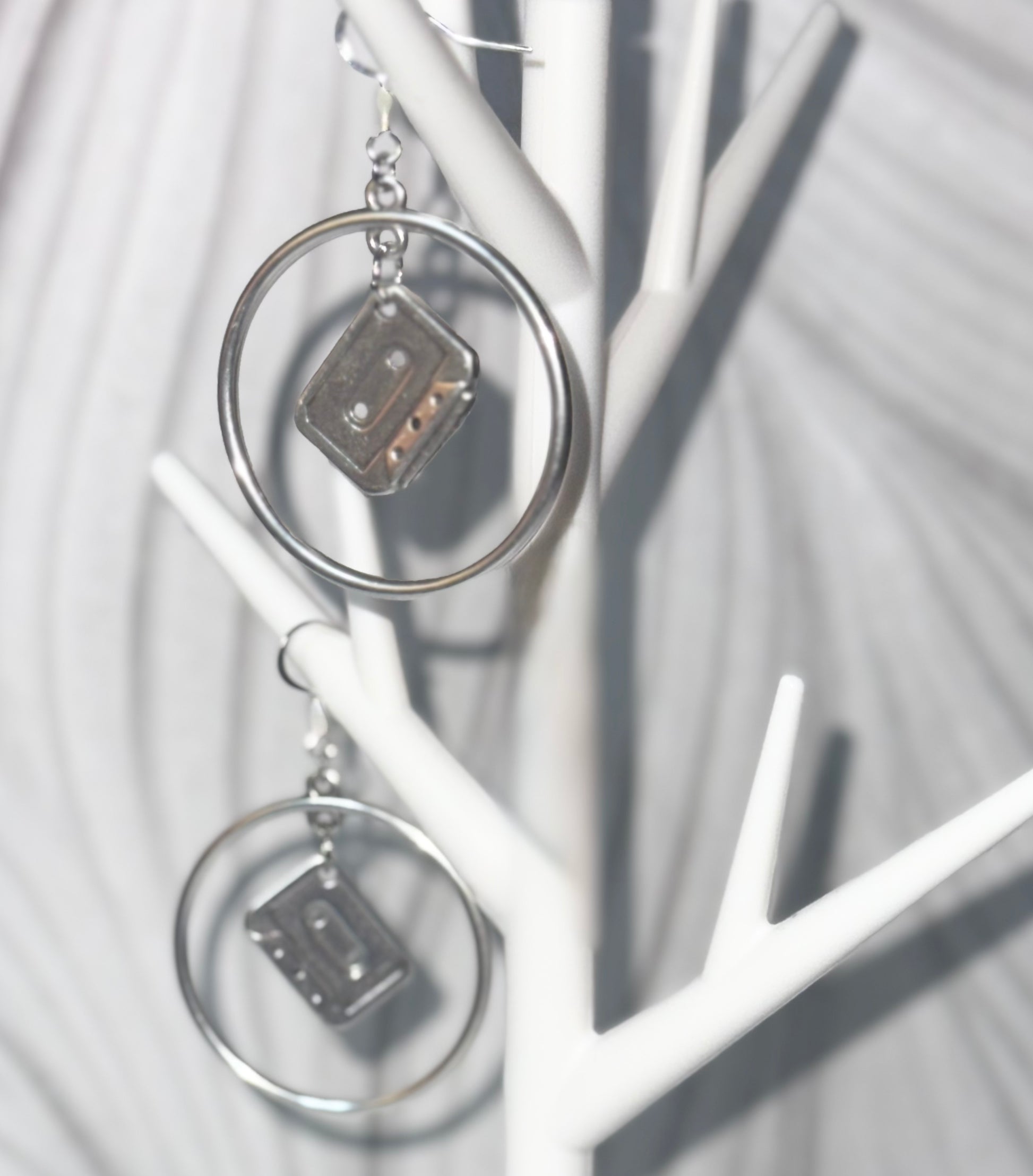 These silver hoops feature cassette tape accents sourced @yellowbrickroaddublin—serving retro vibes with a little Dublin magic. Only one pair available.